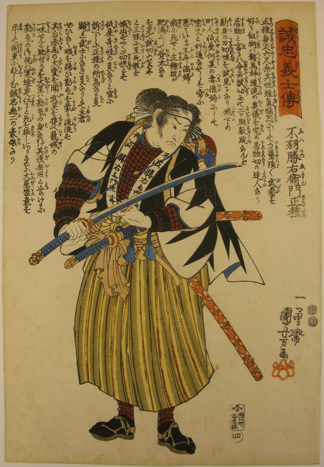 Woodblock print of Fuwa Katsuemon Masatane from the 47 Ronin series by Kuniyoshi - Seichu Gishi Den