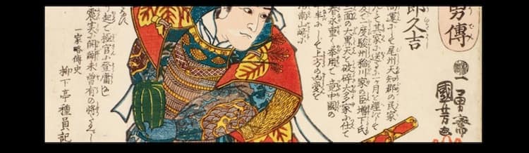 Artist’s seal: Kuniyoshi used a Kiri seal, a variation of the leaf of the Paulowina imperialis (kiri) tree appearing on the Japanese imperial crest, as his personal badge and that of his school for a while. These changed throughout his career.